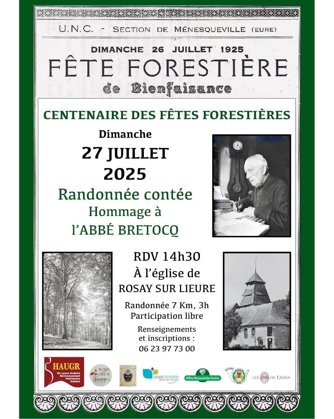 Pour "se mettre dans l'ambiance", inscrivez vous à la randonnée contée "Hommage à l'Abbé BRETOCQ" pour le centenaire des fêtes forestières!